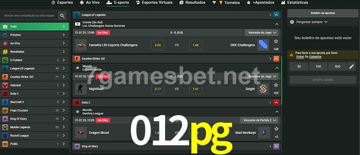 O 012pg oferece uma grande seleção de opções de apostas em e-sports com probabilidades competitivas